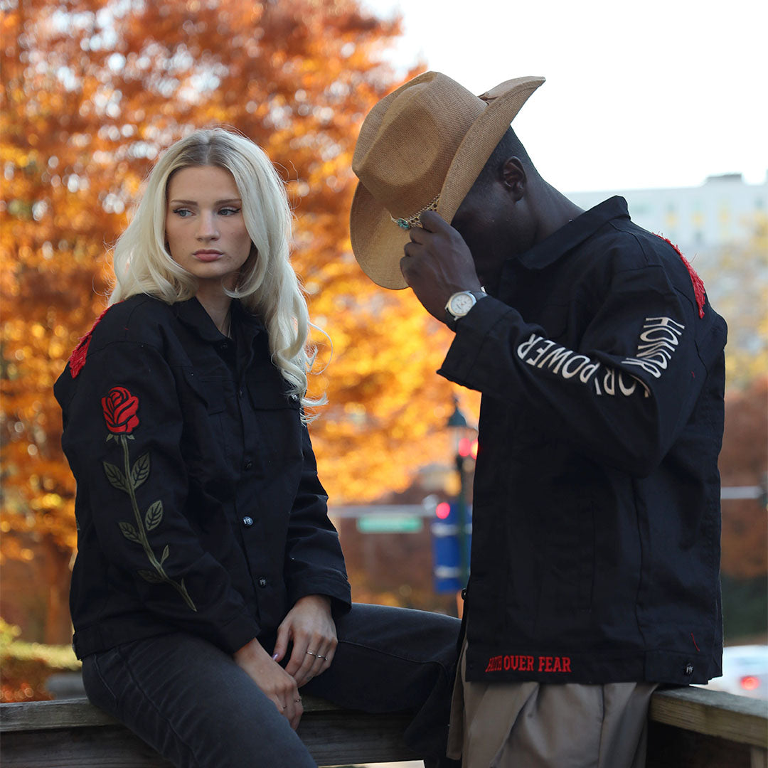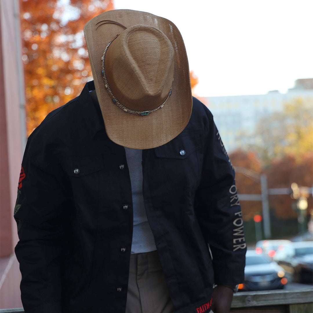 The Testimony Denim Jacket is more than outerwear—it’s a statement of survival, strength, and divine purpose. Built from heavyweight 14 oz premium denim, reinforced with custom FOF hardware, and crafted with meticulous detail, this piece was designed for those who carry their story with courage.
