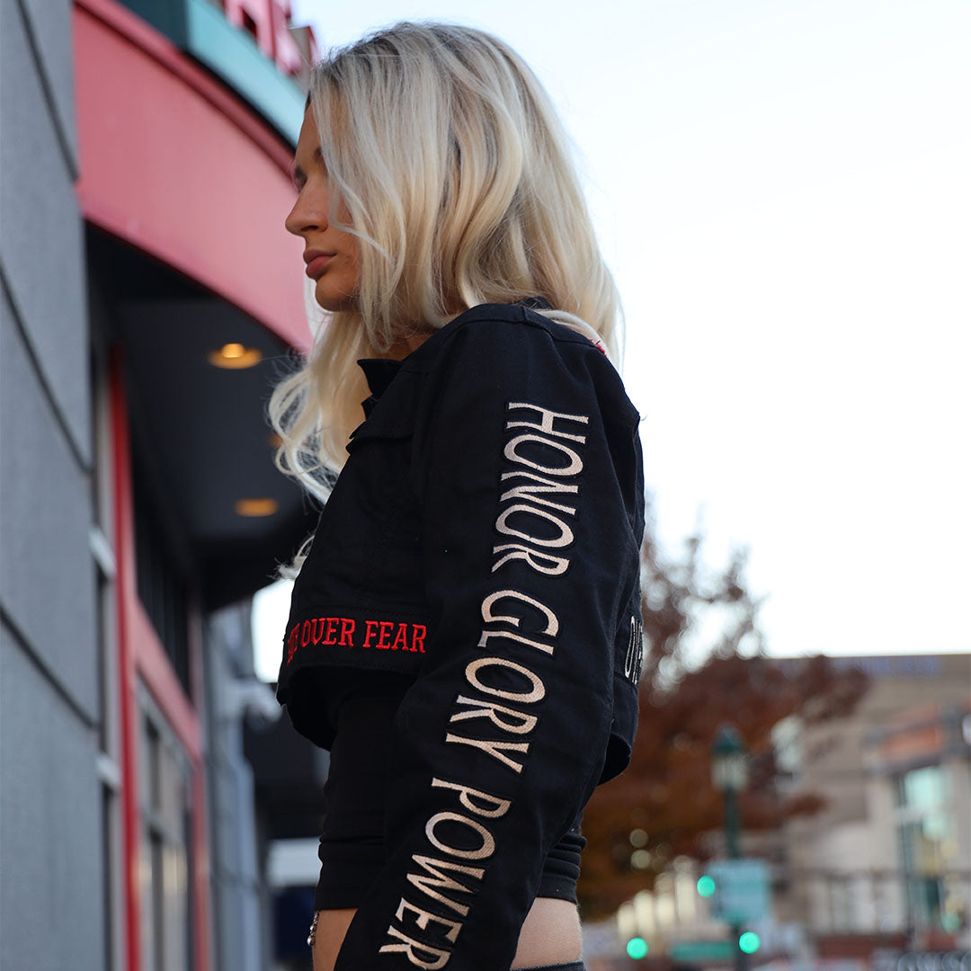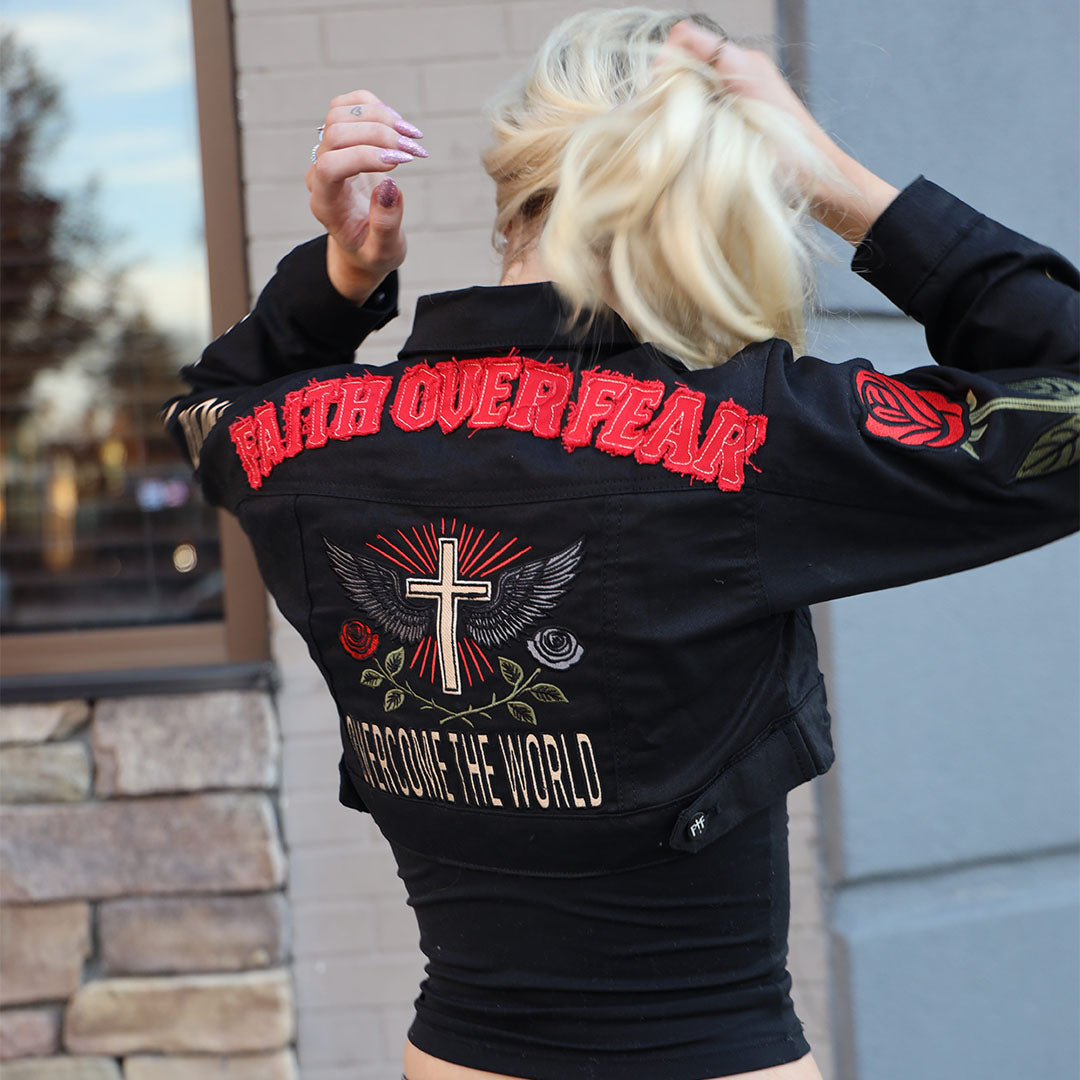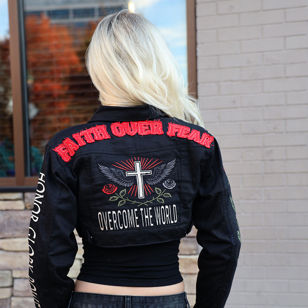 The Testimony Cropped Denim Jacket is more than outerwear—it’s a statement of survival, strength, and divine purpose. Built from heavyweight 14 oz premium denim, reinforced with custom FOF hardware, and crafted with meticulous detail, this piece was designed for those who carry their story with courage.
